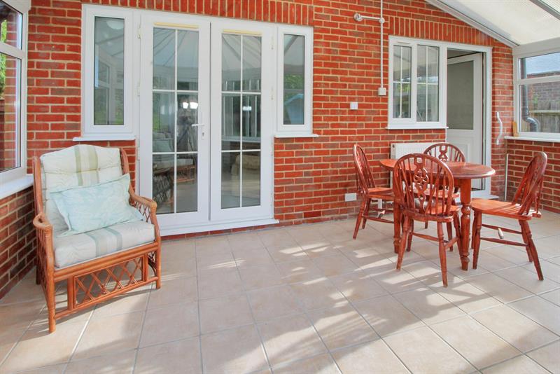 CONSERVATORY Double glazed windows to rear and sides, part pitched roof, radiator, double glazed door and double glazed casement doors opening onto garden.