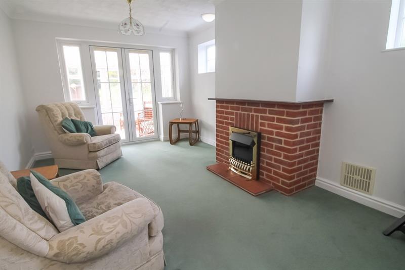 LIVING ROOM Double glazed windows to side, chimney breast with hearth, two sun pipes, radiator, double glazed casement doors with adjacent double glazed windows opening onto conservatory.