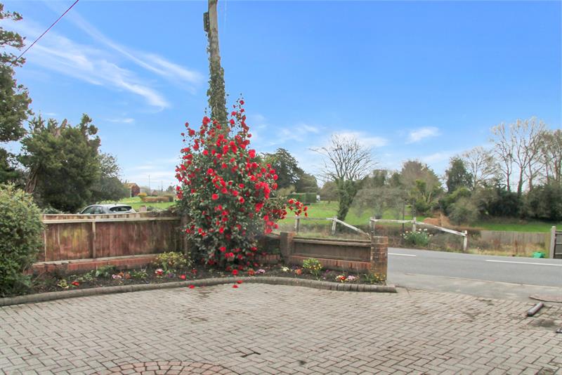The property is approached over a brick paviour parking and turning area flanked with some shrubs and borders. Pedestrian access to the side to the