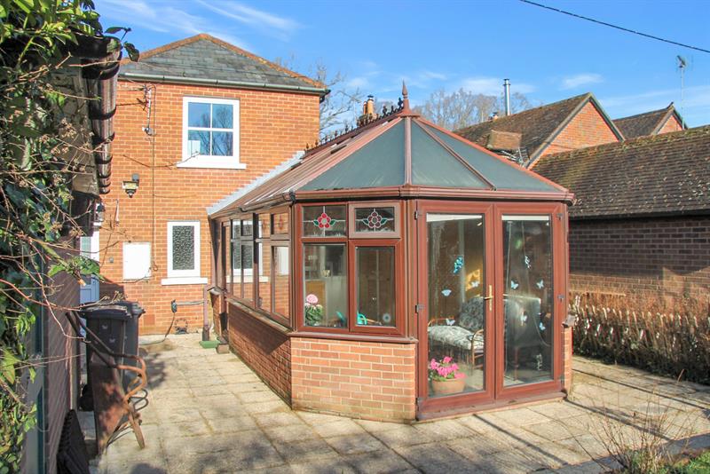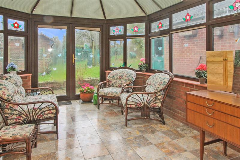 CONSERVATORY Double glazed windows to side and rear, pitched roof, range of built in cupboards with plumbing for washing machine, double glazed doors opening to garden.