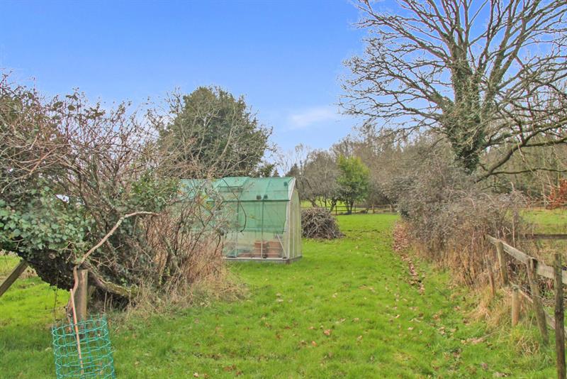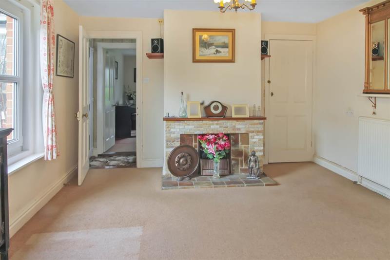 The FRONT GARDEN has hedging to front, a lawn and some shrubs and borders. A gateway opens onto the driveway and leading to the DETACHED GARAGE with up and over door. The good sized REAR GARDEN which continues at an angle is mainly laid to lawn, shrubs, fruit trees, two sheds, greenhouse. A public footpath runs across the rear part of the garden. The total plot is approximately 0.27 acres