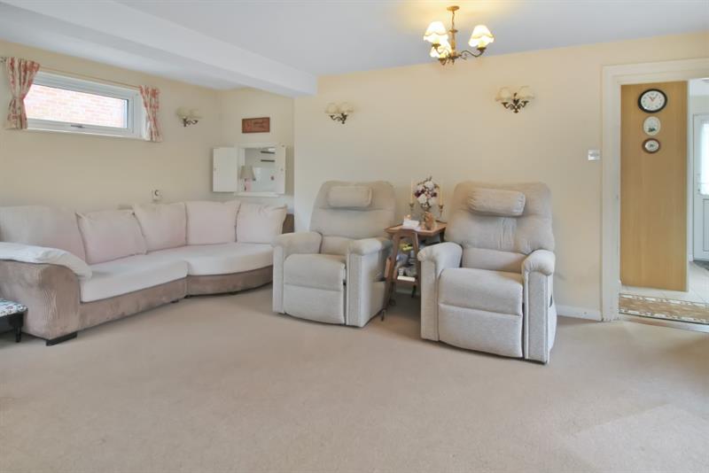 LIVING ROOM Double glazed windows to front and side, high level double glazed window to side, under stairs cupboard, radiators, serving hatch, door opening to: