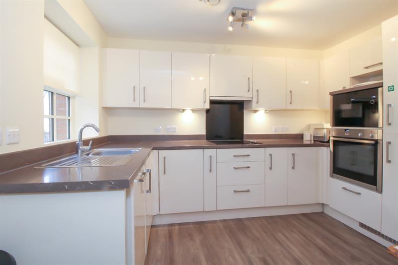 Double glazed window to side, fitted with a range of wall and base units with work surfaces over. Inset sink unit with cupboard below, built-in electric oven