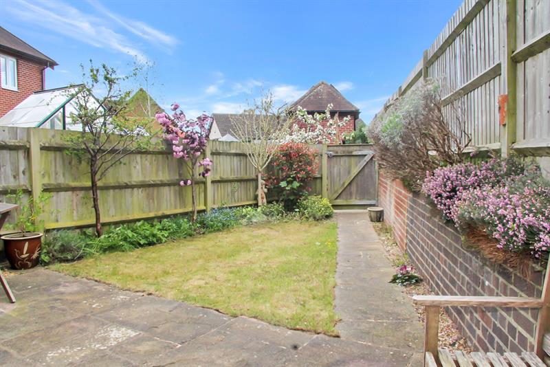 The FRONT GARDEN has an area of lawn, shrubs and borders and a pathway to the side of the property with gate opening to the enclosed REAR GARDEN which has a paved patio, lawn, some shrubs and borders and a pedestrian gate opening to rear where there is a COMMUNAL BIKE STORE and an ALLOCATED PARKING SPACE.