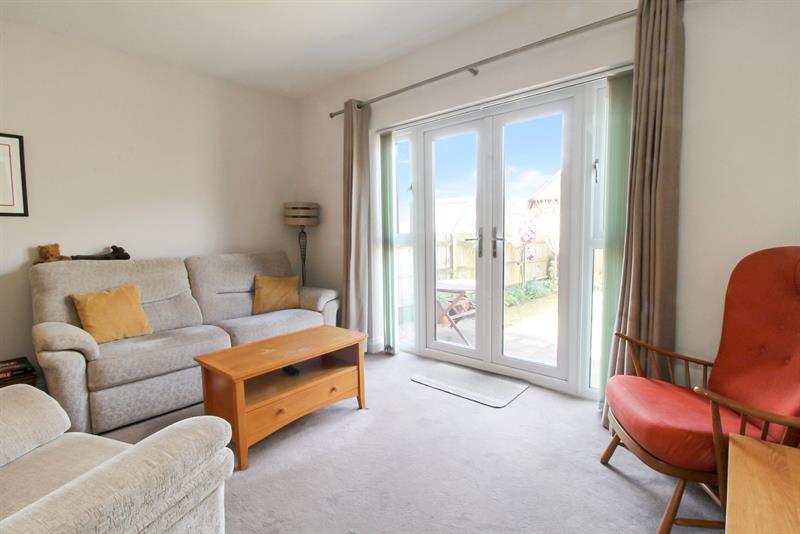 Double glazed casement doors, with adjacent double glazed windows, opening to the rear garden, understairs cupboard, radiator.