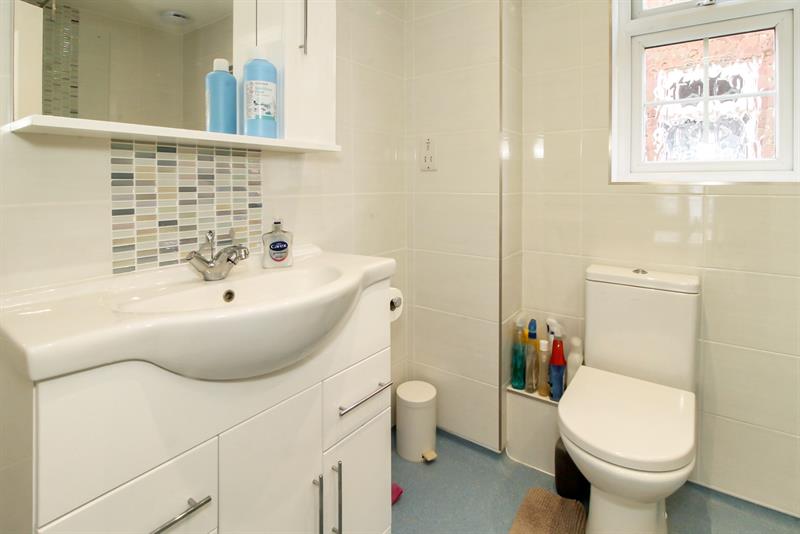 SHOWER ROOM Double glazed window to side, suite comprising large tiled shower cubicle with glazed screen, low level w.c., wash hand basin with cupboard below, fully tiled walls, ladder style radiator.