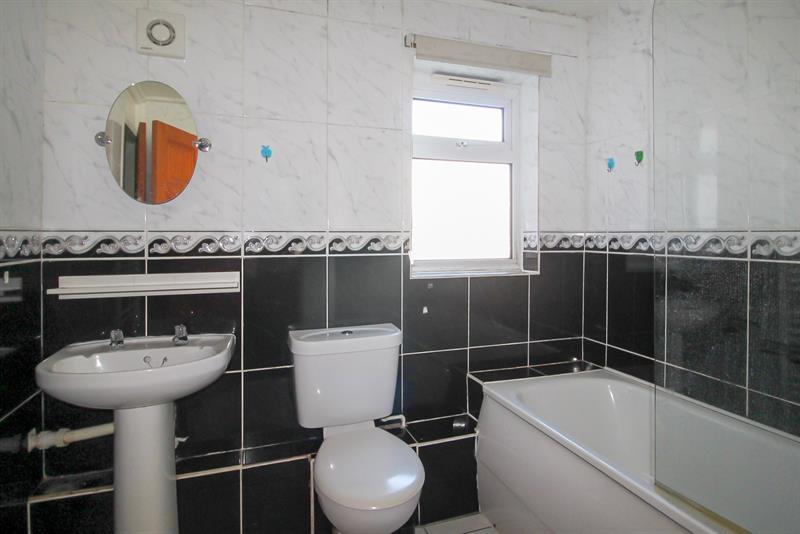 over and glass shower screen. Low level w.c., wash hand basin, fully tiled walls and floor, ladder style radiator, extractor fan