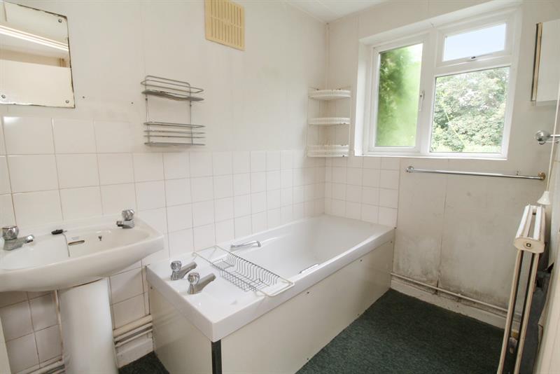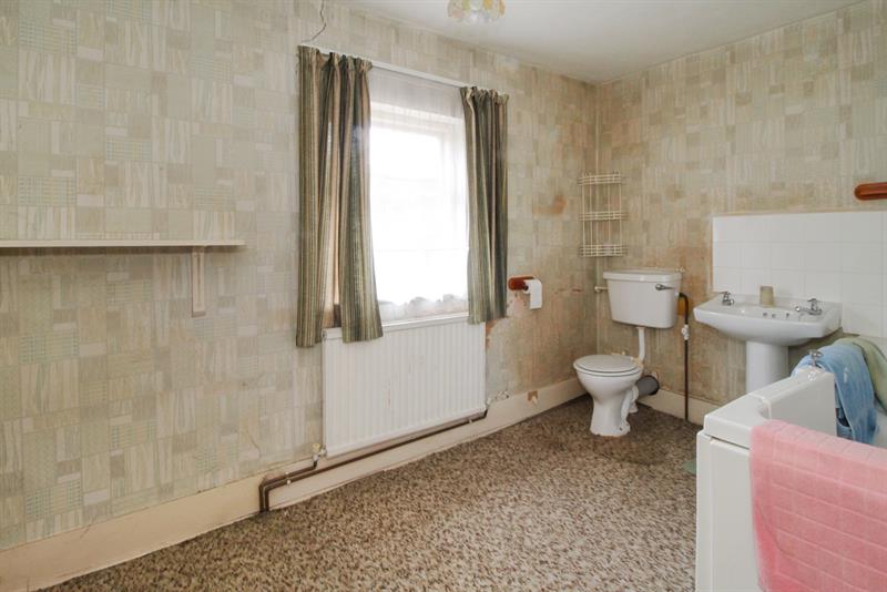 BEDROOM THREE/BATHROOM Window to rear, (former bedroom), walk in bath, pedestal wash hand basin, low level w.c., partially tiled walls, radiator.