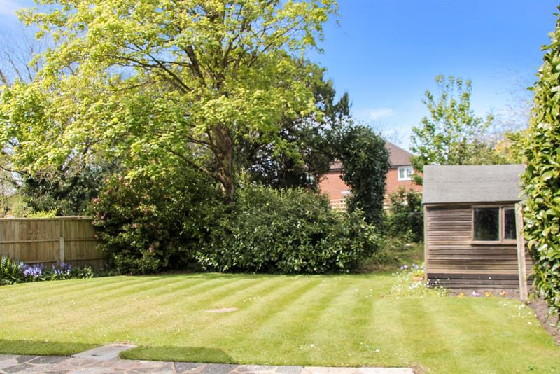 REAR GARDEN which has a patio area, mainly laid to lawn, numerous shrubs and borders and a shed. There is a further natural area to the rear with rhododendron bushes.