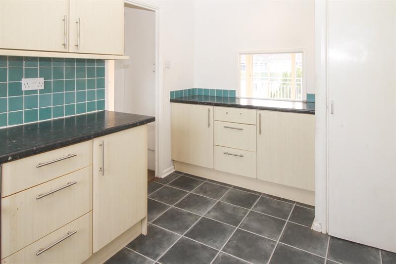 Double glazed window to rear, fitted with a range of wall and base units with work surfaces over, stainless steel sink unit with cupboard below, built in electric oven