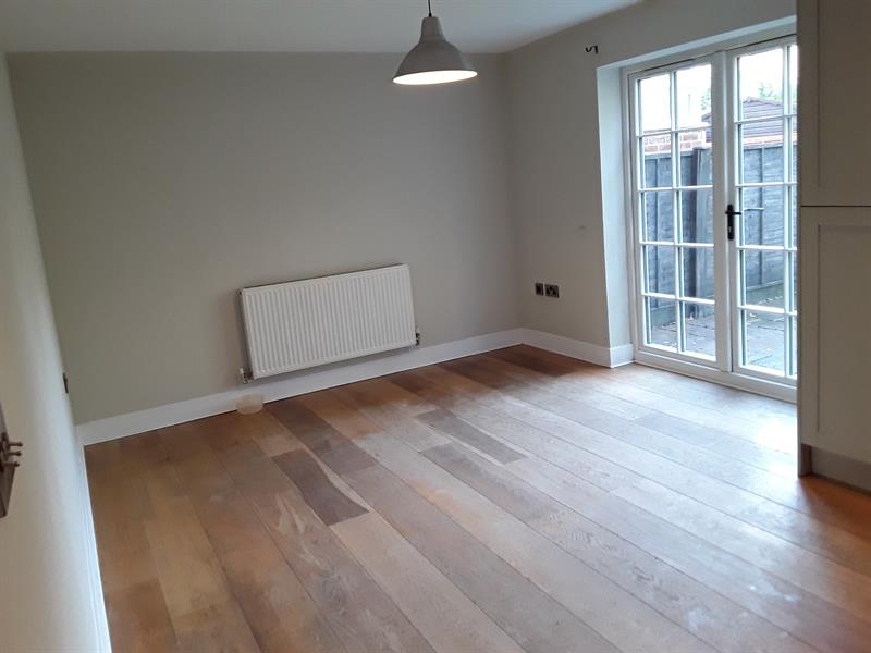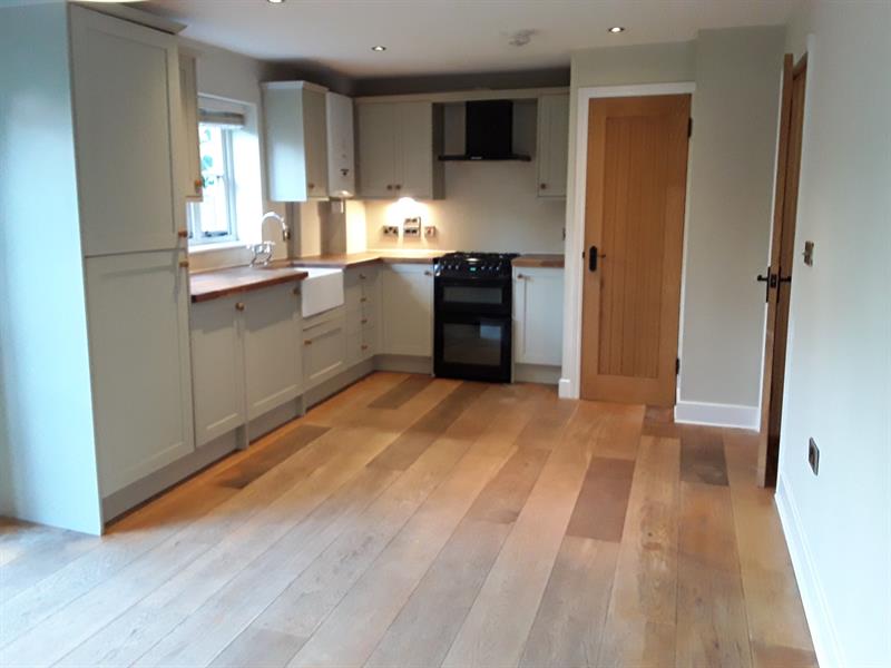 Downstairs has an open plan kitchen / dining room, downstairs WC and living room.